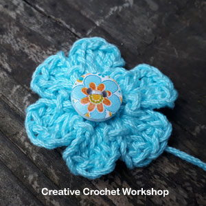 Sew button as a center for the flower; then sew flower into position onto the head band.