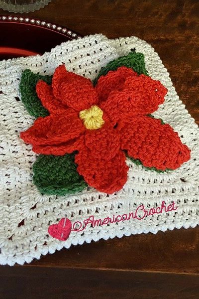 Poinsettia Washcloth ~ Free Crochet Pattern Make this Poinsettia Washcloth just in time for the holidays. Keep one for yourself or give a few as gifts. Enjoy!
