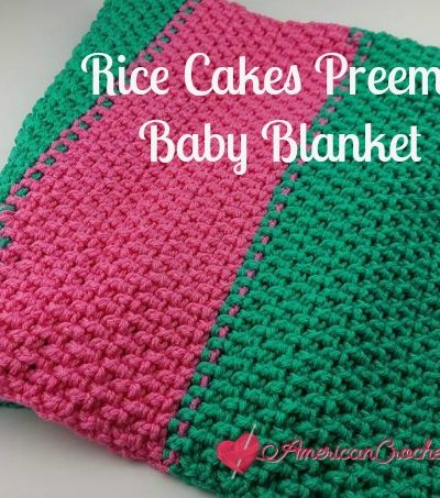 Snuggle your precious little one in this cozy Rice Cakes preemie baby blanket. It uses a simple crochet stitch pattern and makes a quick gift for the tiniest little bundles of joy. Scroll down for the free pattern. >>> SIGN UP FOR THE AMERICAN CROCHET NEWSLETTER! <<< Queue & Favorite on Ravelry OR Purchase it on ETSY! Thank you, Red…