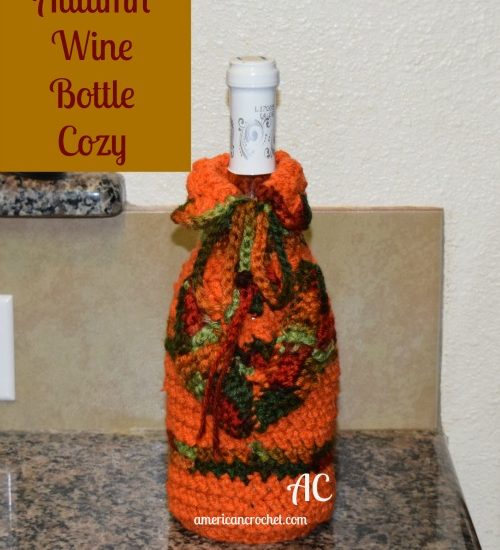 This Autumn Wine Bottle Cozy will be great to dress up a hostess gift for the upcoming holiday season. It is laced up to allow the bottle to fit inside. Enjoy! It’s part of the 2015 Holiday Blog Hop.
