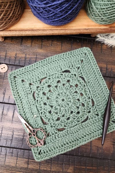 The Enclave Square is the 19th design in the Riverwood Square CAL – Modern Version. Using basic stitches like single, half double, and double crochet along with double crochet clusters and back loop only techniques, this 9″ square offers a relaxing pattern with just enough visual interest to keep you engaged.